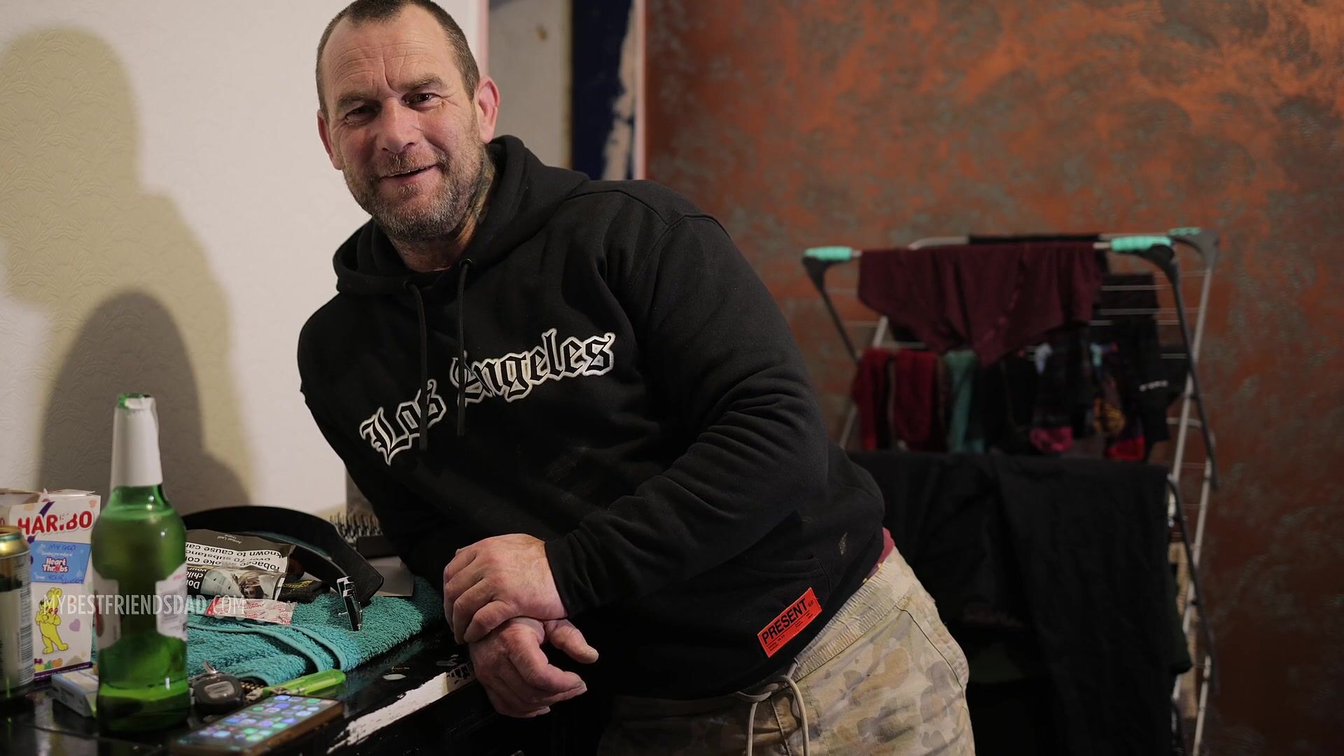 BR Brad Hunter stripped down to his socks