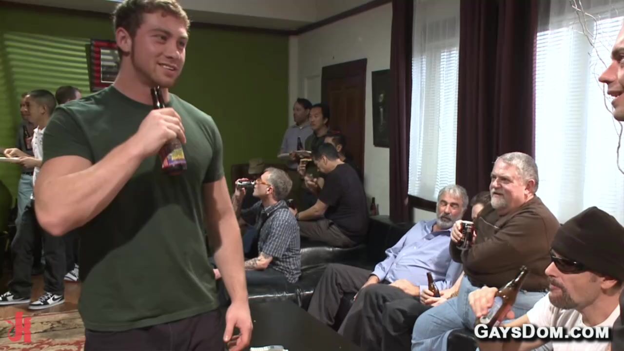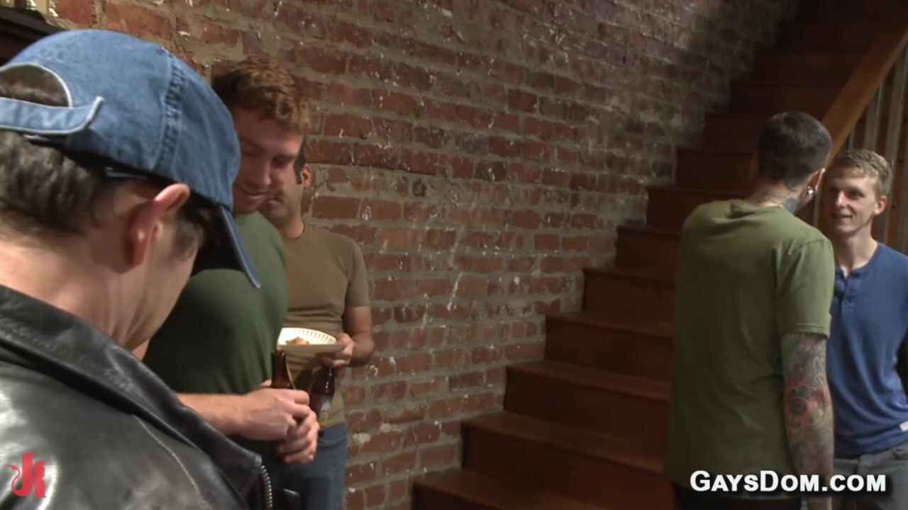 Epic house party of Connor Maguire is interrupted when his neighbor Austin Chandler shows up to complain and he and Sean Duran bind and anal and face gangbang fuck him in front of guests
