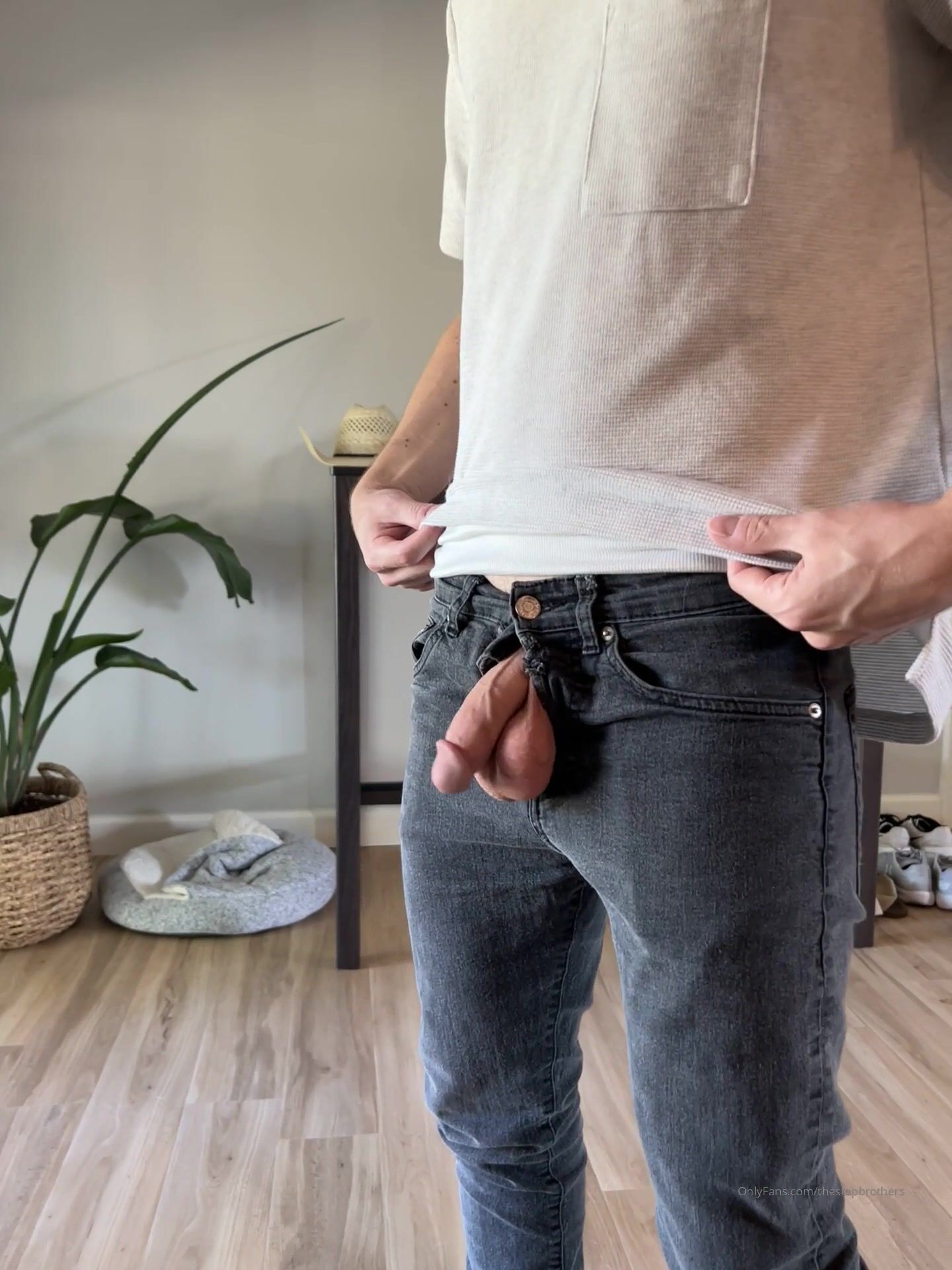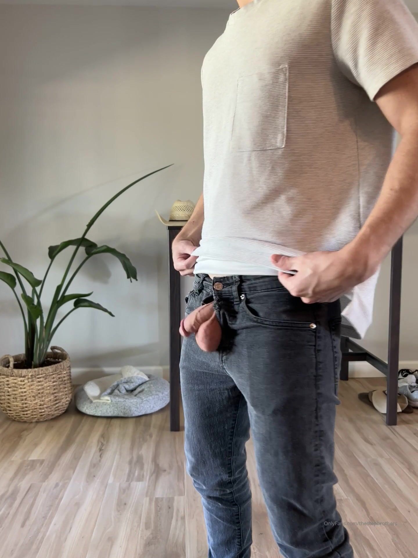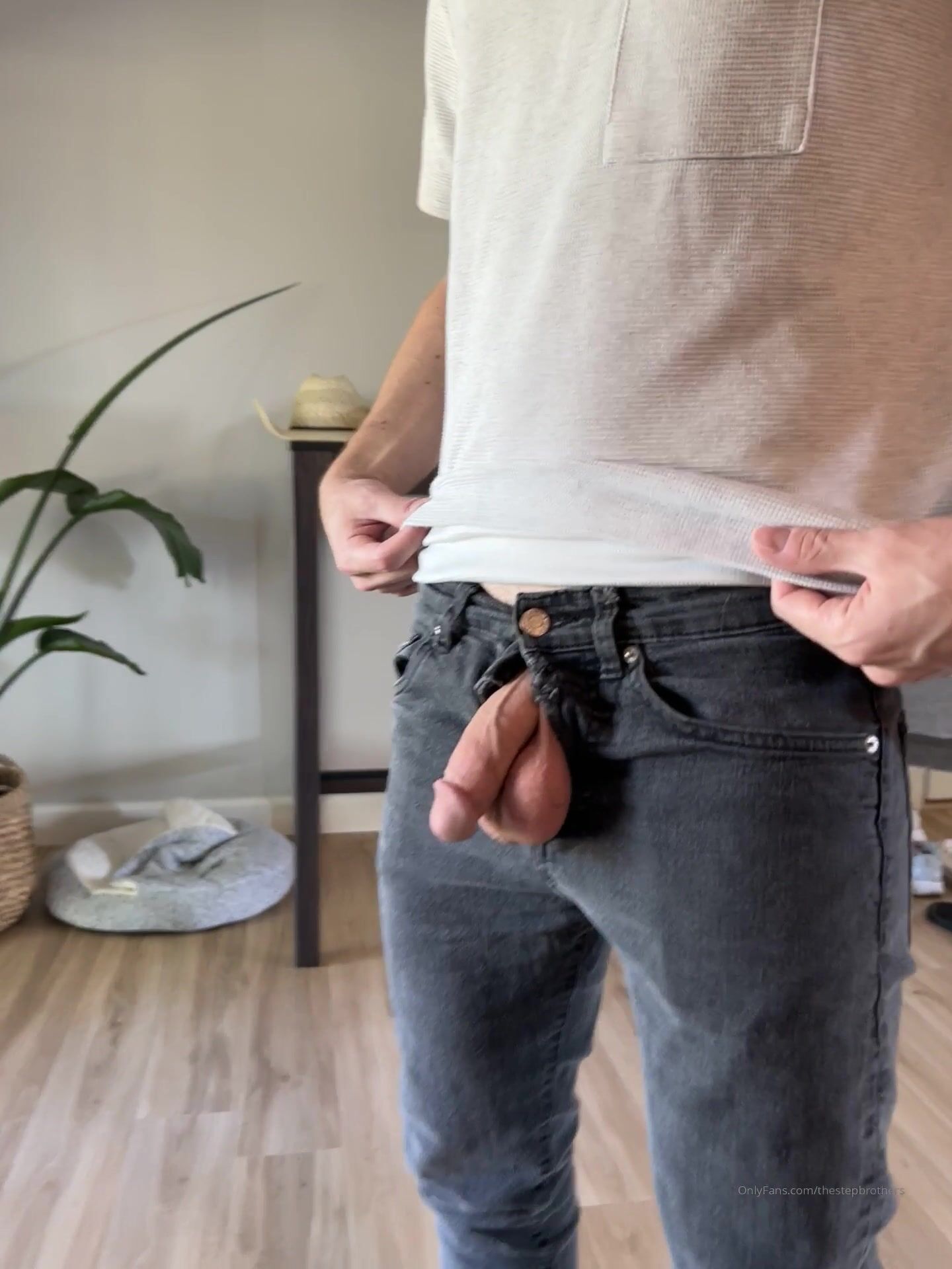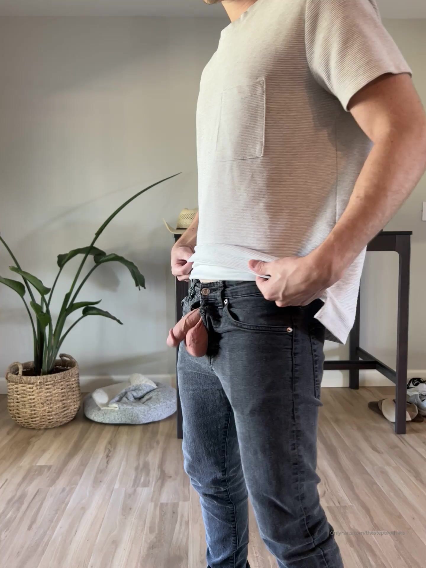 TheStepBrothers - Lil bro wiggles his cock out his jeans - 5 secs - free gay porn