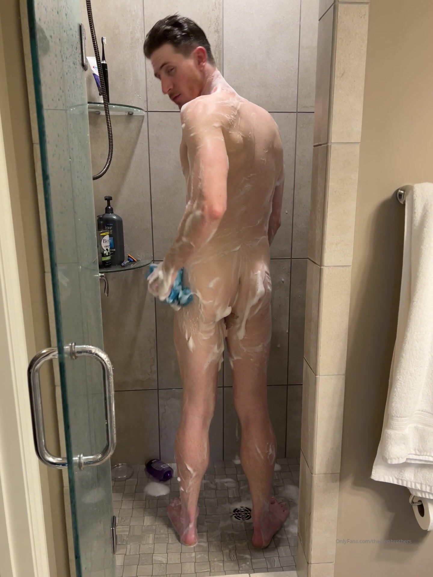 TheStepBrothers - Big bros butt in the shower - 10 secs - free gay porn