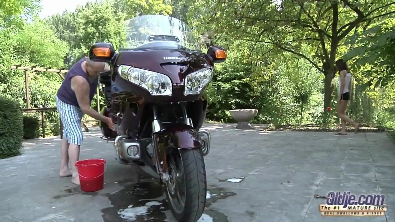 Young petite girl swallows old cum after grandpa cock ride